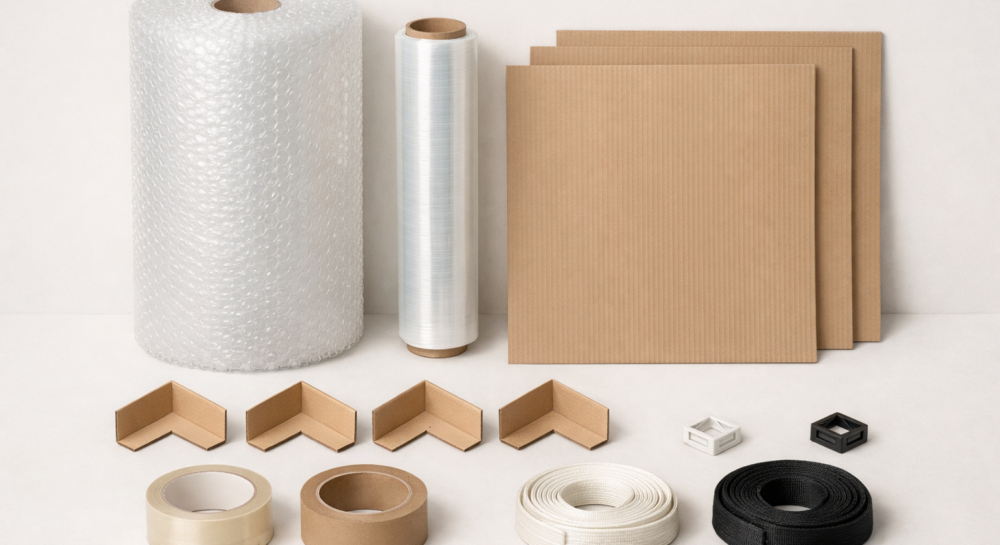 Можно использовать вспененный полиэтилен, плотный картон, защитные одеяла или несколько слоёв стрейч-пленки в сочетании с мягкой прокладкой.
